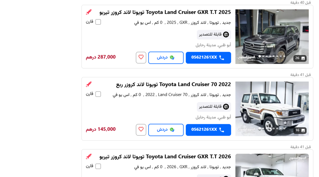 متجر السوق المفتوح هو سوق لبيع وشراء السيارات والدراجات النارية والمركبات الأخرى في دولة الإمارات العربية المتحدة. الموقع متاح باللغتين العربية والإنجليزية، ويحتوي على مجموعة متنوعة من المركبات المدرجة ، بما في ذلك السيارات وسيارات الدفع الرباعي والشاحنات والدراجات النارية. يمكنك البحث عن المركبات حسب الماركة والطراز والسنة والسعر والموقع.
