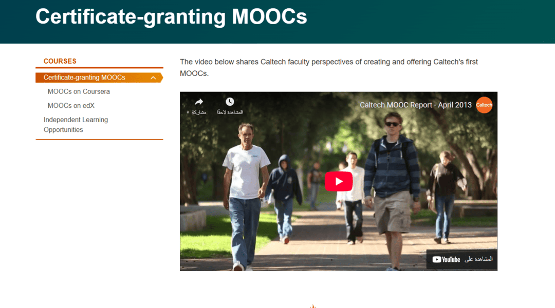 احصل على دورات مجانية من معهد كاليفورنيا للتكنولوجيا